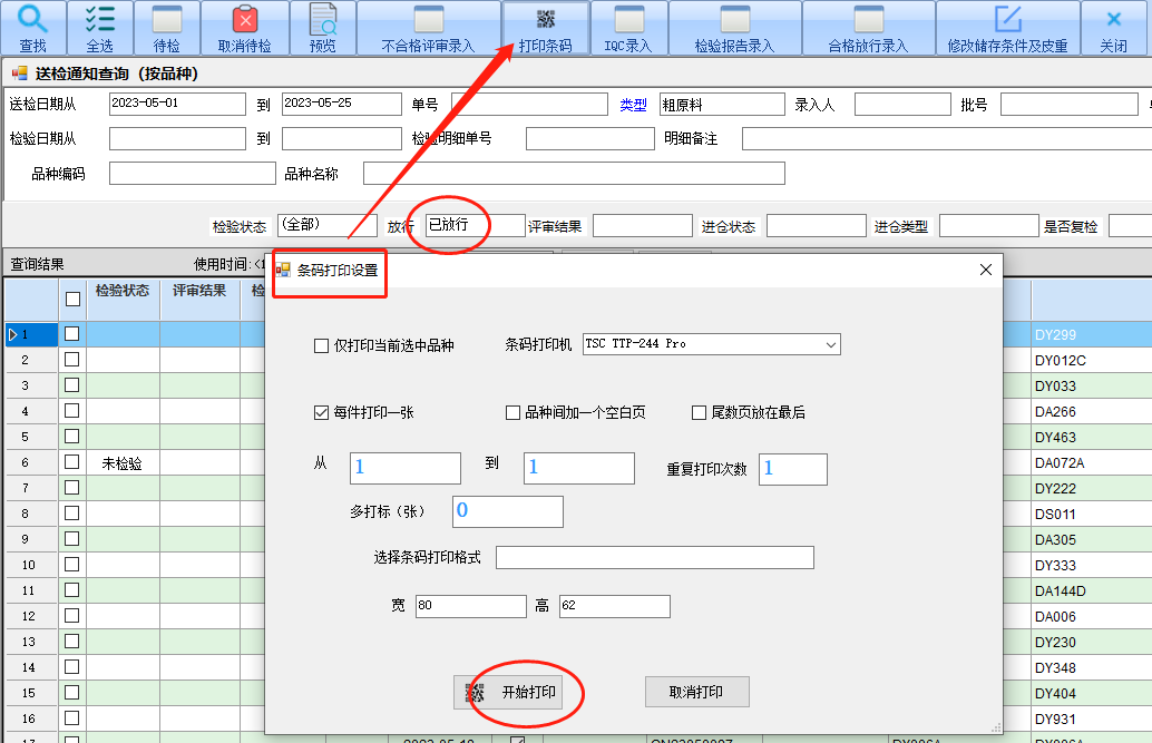 原料送检完成,合格放行之后,在ERP质量管理-送检通知单查询(按品种),