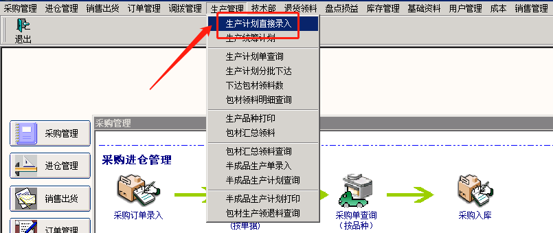 点击“生产计划直接录入”菜单
