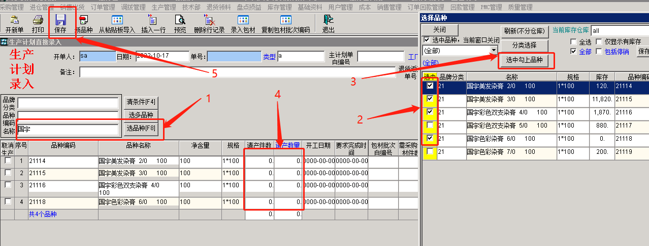录入生产计划