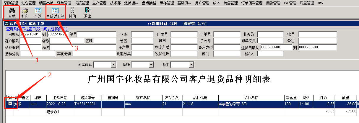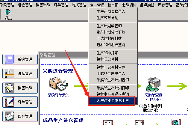 点击 客户退货生成返工单