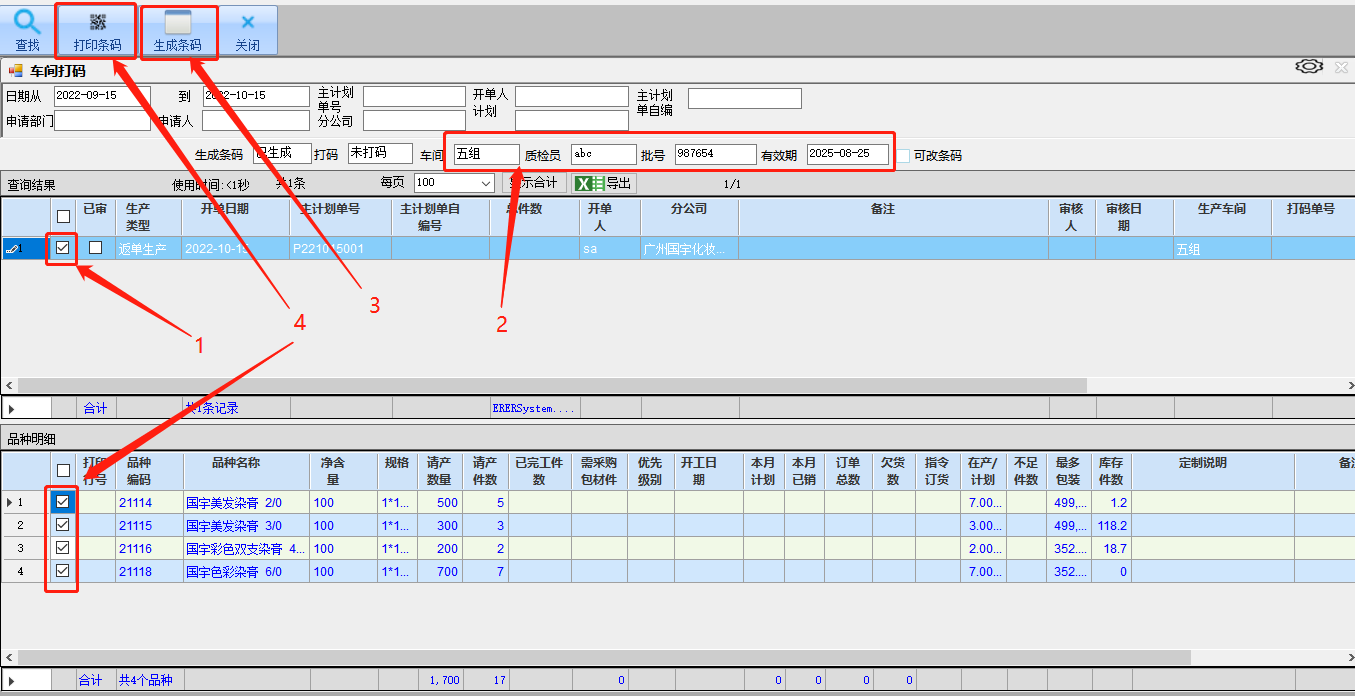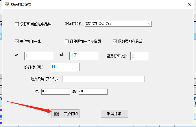 4.点击 打印条码(可以勾选单个或多个品种打印)